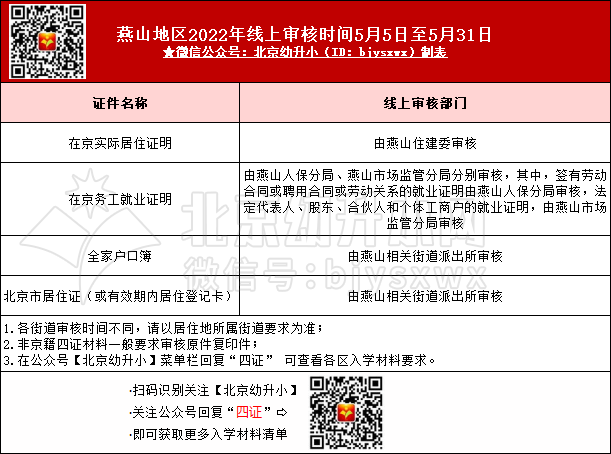 2023年北京16区非京籍幼升小入学材料审核部门不完全相同,其中燕山地区非京籍幼升小入学材料由哪些部门审核?北京幼升小网为您分享相关内容。