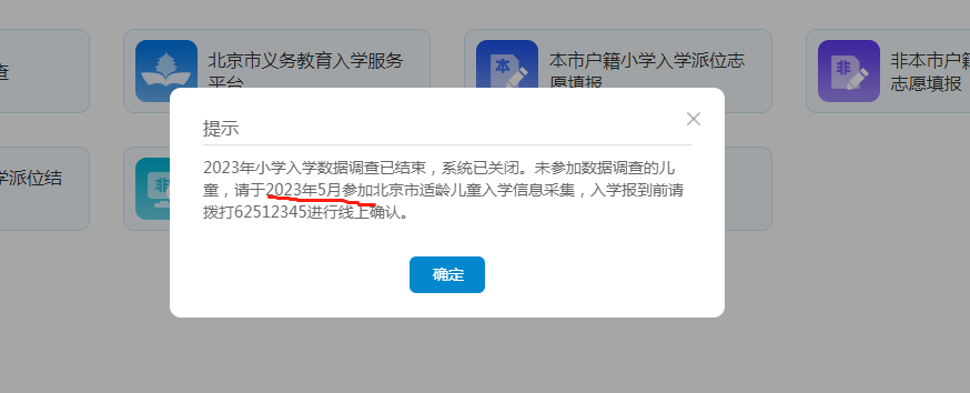 通州区2023年小学入学数据调查目前已结束,相关提示中透露2023年北京市适龄儿童入学信息采集时间为5月↓↓↓