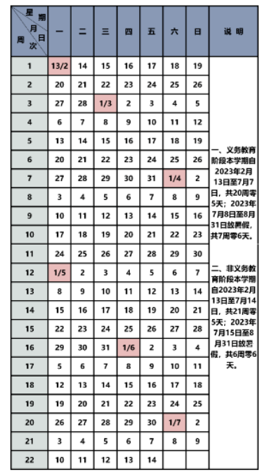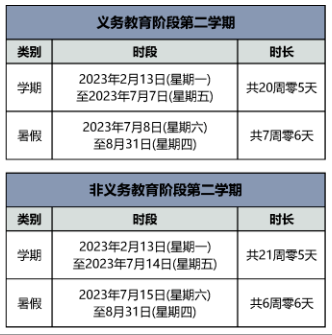2月12日寒假结束,2月13日春季开学,7月15日放暑假!2022-2023年北京中小学第二学期校历安排如下图↓