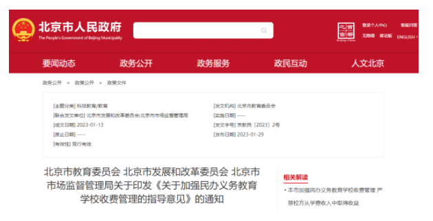 1月29日,市教委、市发展改革委、市市场监管局联合发布《关于加强民办义务教育学校收费管理的指导意见》,明确民办义务教育学校可以收取学费、住宿费、服务性收费和代收费;不得强制或暗示学生及家长购买指定的教辅软件或资料;不得违规补课加收相关费用。