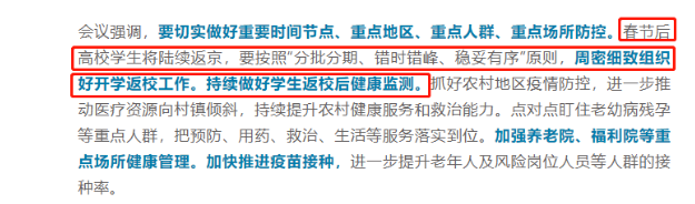 相关方案围绕调整优化校园检测策略、科学安排教育教学方式、开展健康监测等方面提出了8条举措。其中包括学校、幼儿园不再开展全员核酸筛查,师生员工出入校门和校园公共区域无须提供核酸证明。非疫情流行时,学校、幼儿园开展正常的线下教学活动。疫情流行时,高校校园内可实施分区管理,涉疫中小学或幼儿园短期内可采取线上教学或临时关停。疫情解除后,要及时恢复正常教育教学。