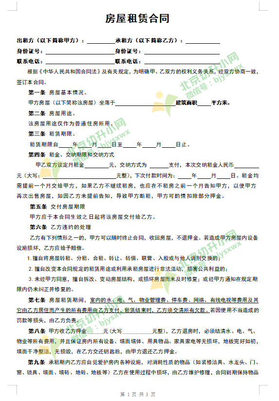 1.本文仅供分享,具体租房合同要求请以街道办及教委为准;