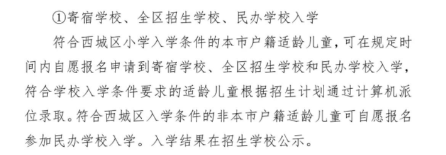 西城区寄宿学校、全区招生学校、民办学校入学方式