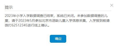 根据通州区入学数据调查系统提醒,未参加通州区入学数据调查的儿童请在5月信息采集前拨打6212345进行线上确认。