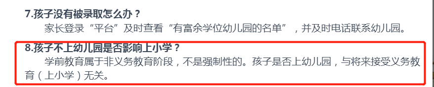 参考2022年北京多区幼儿园入园情况来看,学前教育属于非义务教育阶段,不是强制性的。孩子是否上幼儿园,与将来接收义务教育无关,详细内容如下: