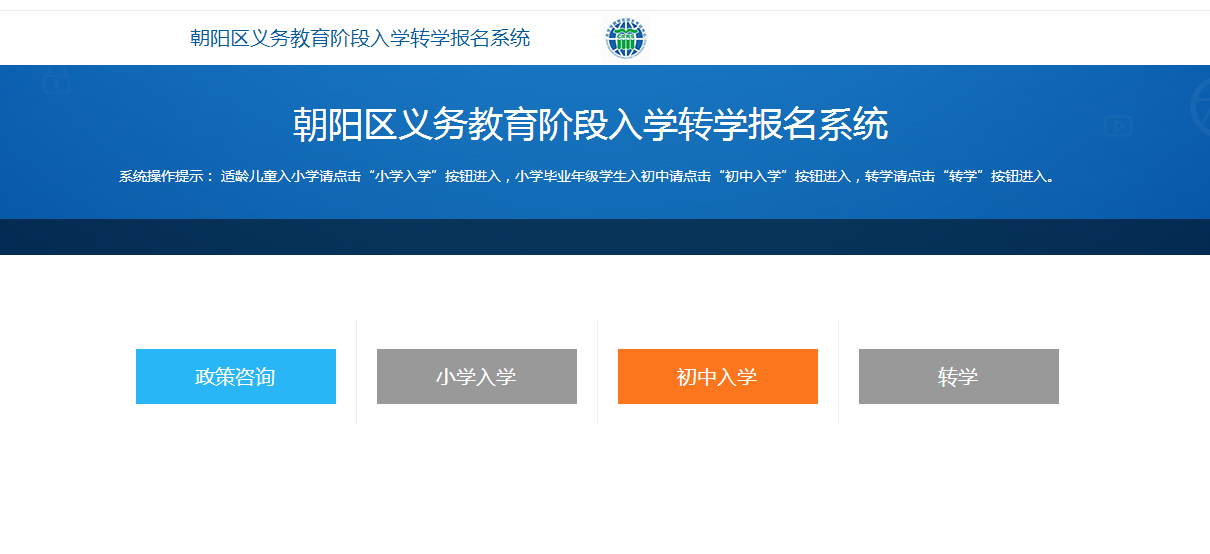 朝阳区义务教育阶段入学转学报名系统入口网址:http://yjrxbm.bjchyedu.cn/Home/index