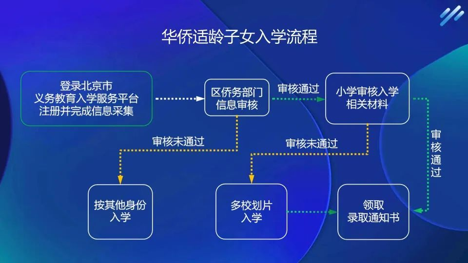 按本市户籍对待的适龄儿童少年入学。区台办认定的台胞子女、区侨务部门认定的华侨子女、国家或北京市博士后管理部门认定的在京在站博士后研究人员子女、符合随军进京落户条件正在办理随军手续的现役军人子女、父母一方有本市常住户籍或持有《北京市工作居住证》的适龄儿童少年入学方式与本市户籍相同。