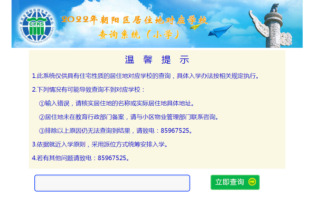 2023年幼升小朝阳区小学划片查询系统入口网址:http://xqcx.bjchyedu.cn/