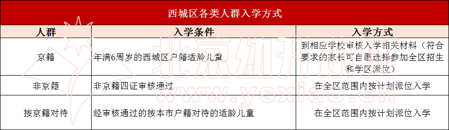重要提醒:2023年幼升小政策未公布,以下信息摘自于2022年西城区义务教育入学政策,仅供参考,最终请以入学当年为准。