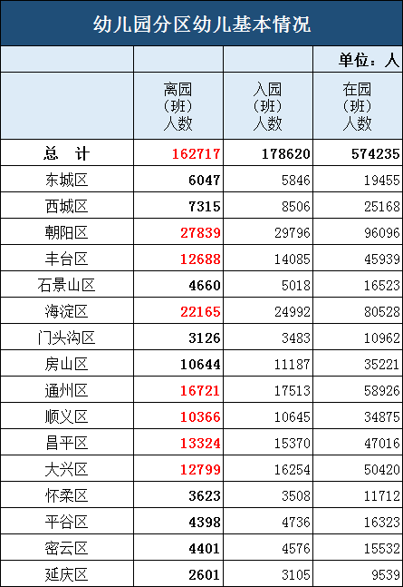 今年幼儿园离园总人数为162717;但需注意!北京幼升小入学适龄儿童不仅包含在京幼儿园毕业生,也有未在北京上幼儿园的适龄儿童!结合下表,2023年幼升小入学人数(依据北京出生人口统计数:19.66万人)可看出离园人数仅为幼升小人数的一部分!
