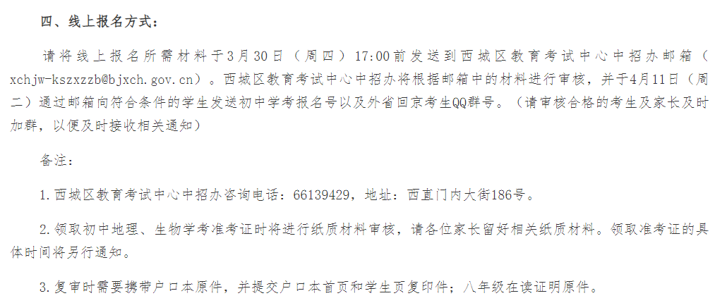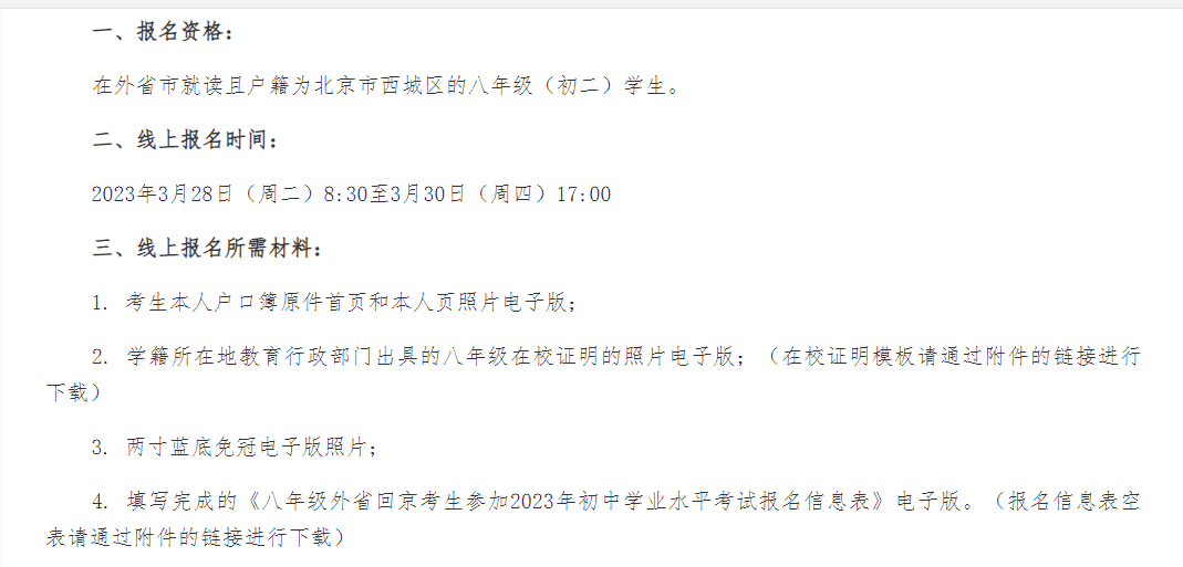 八年级外省回京考生参加西城区2023年初中学业水平考试线上报名通知