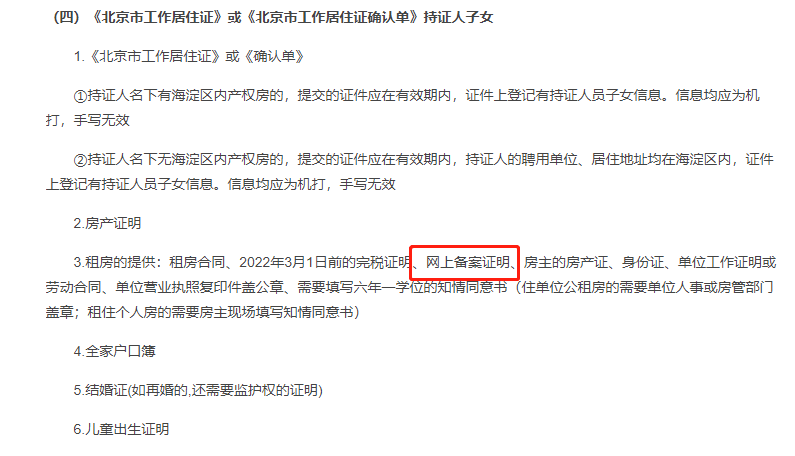 2023年海淀区幼升小:学院路学区持北京工作居住证按京籍对待租房备案提醒