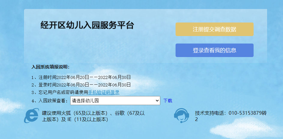 2022年北京经济技术开发区系统采集时间为:2022年6月20至2022年6月30日,2023年北京幼儿入园家长可在此时间段内多加关注系统动态。