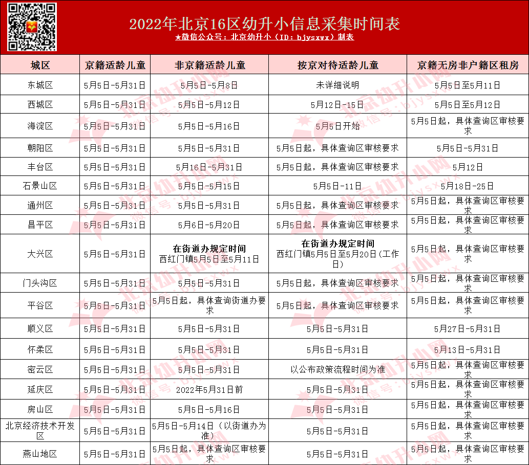 2、不同人群信息采集时间也有所差异,比如海淀区、西城区等非京籍填报时间较短,家长千万不要错过这个阶段,以免影响孩子入学;