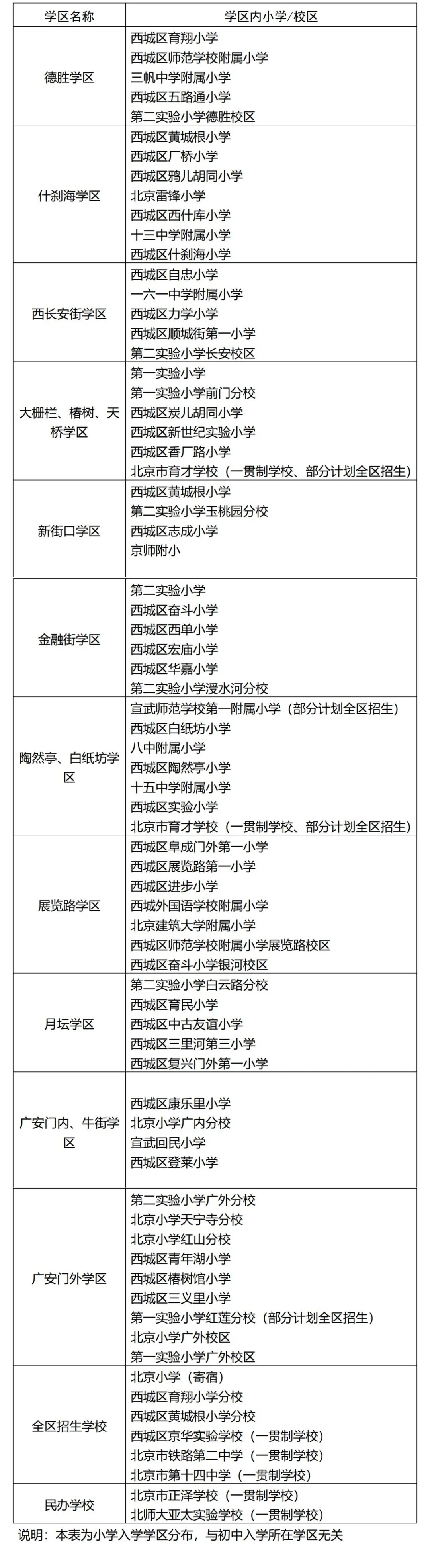 2023年幼升小西城区学区划分一览表(13个学区内小学/校区分布)