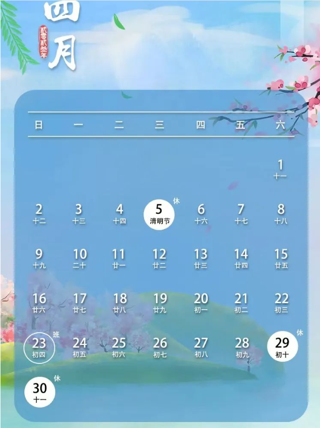 2023年4月29日(星期六) 至5月3日(星期三)放假调休,共5天。4月23日(星期日)、5月6日(星期六)上班。