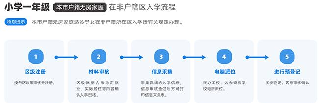 在非户籍地入学,先在北京市义务教育入学服务平台注册,按照入学城区要求合法稳定就业、实际居住等材料确认入学资格,审核通过后才能参加信息采集。