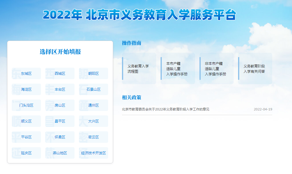 温馨提醒:目前是2022年系统,等待2023年招生开始后会更新系统,届时登录此平台上选择您入学城区进行填报!