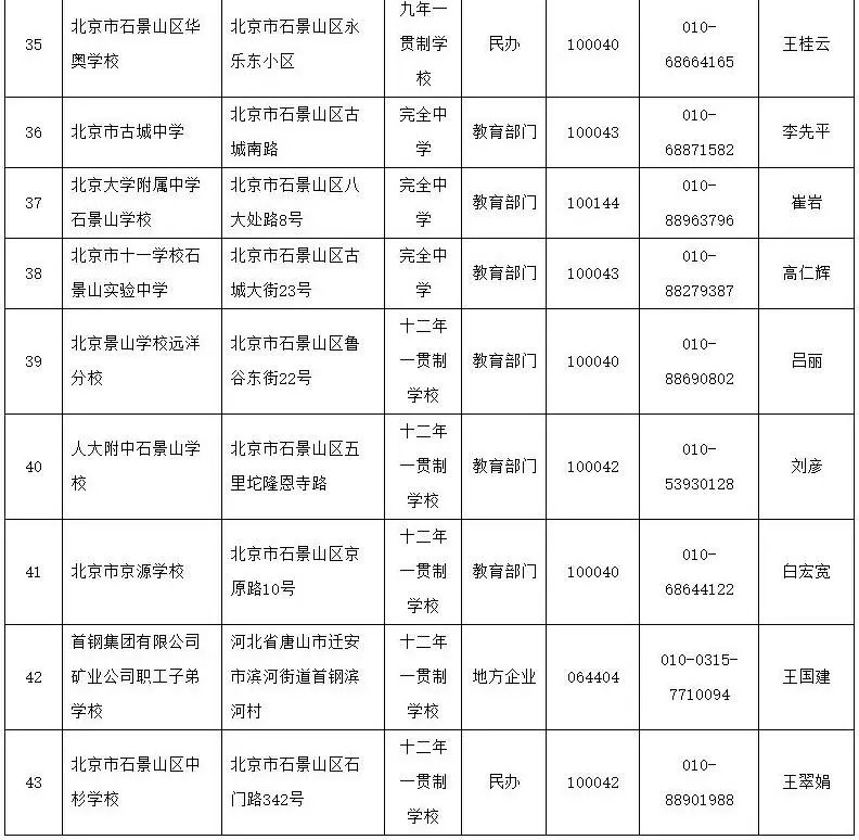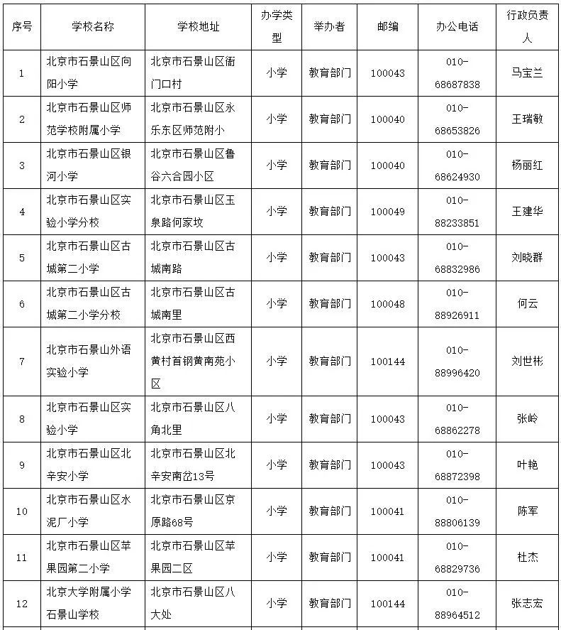 提醒:从上图中可看出,石景山区有6所九年一贯制学校,5所十二年一贯制名单,快来看看都在您家附近吗!