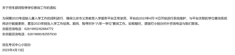 2023年幼升小海淀区招生期间暂停学位查询工作