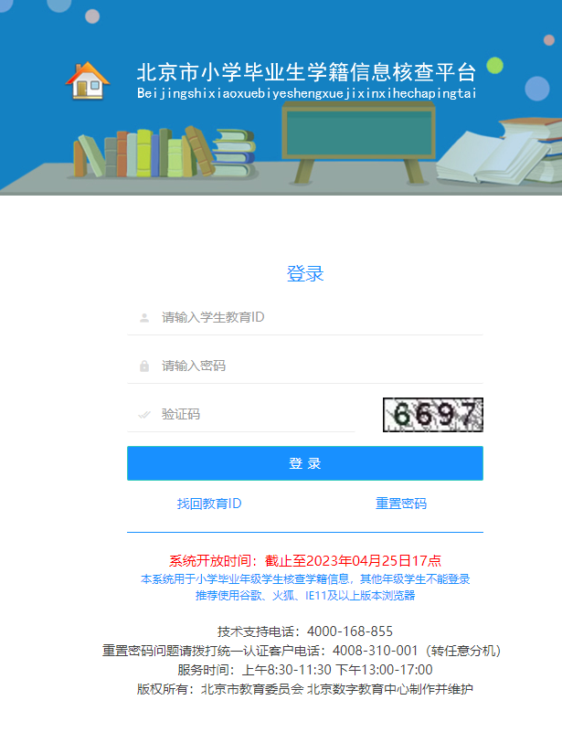 提醒:2023年北京市小学毕业生学籍信息核查平台截止至2023年04月25日17点,且仅限毕业年级核查。