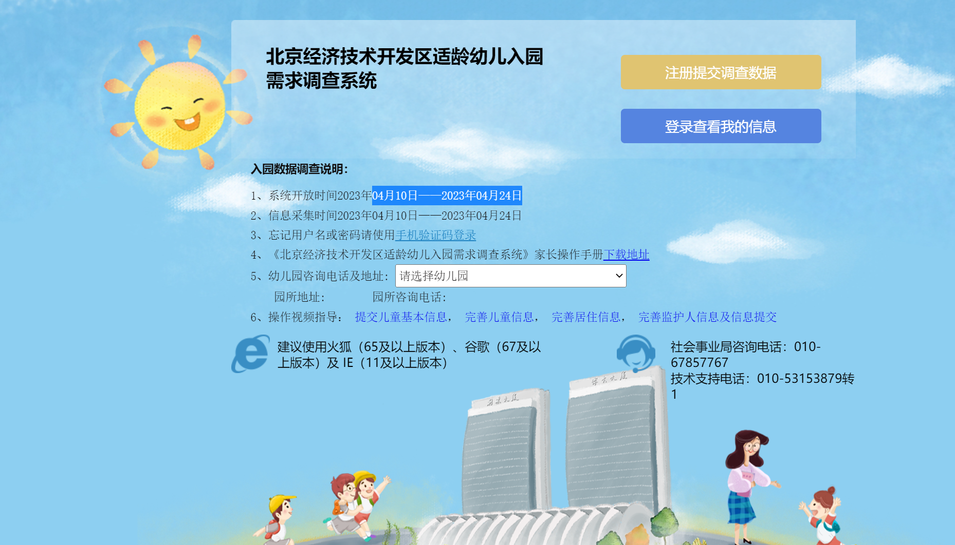 2023年北京经济技术开发区适龄幼儿入园需求调查系统:https://ryrxdc.bda.gov.cn/yeyrydc/