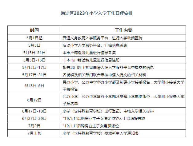 2023年海淀区幼升小入学工作时间安排表出炉,海淀区幼升小什么时候信息采集?什么时候审核材料?快跟京京一起来看看↓↓↓