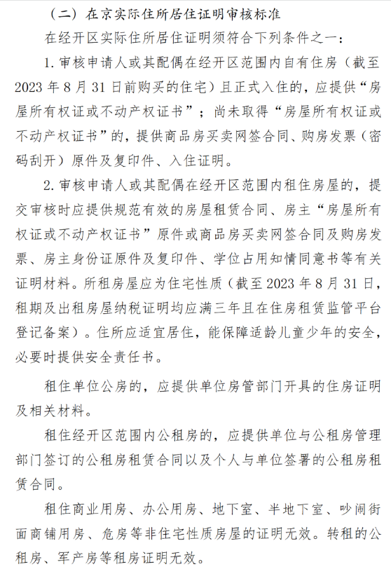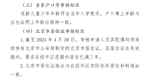 2023年幼升小北京经济技术开发区中小学就读审核程序及标准