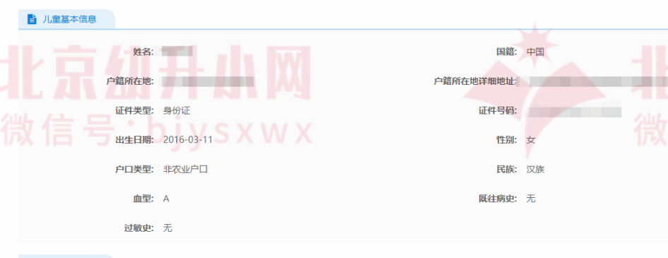 注意:非京籍适龄儿童需填写北京居住证相关信息。