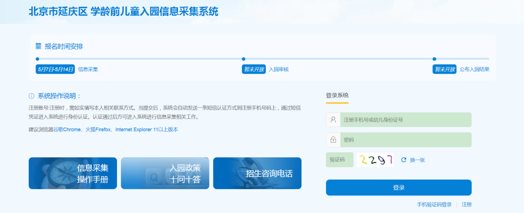 北京市延庆区学龄前儿童入园信息采集系统网址: