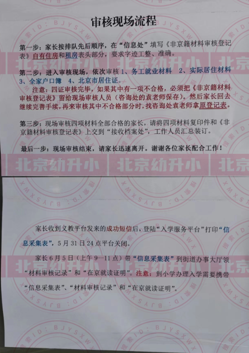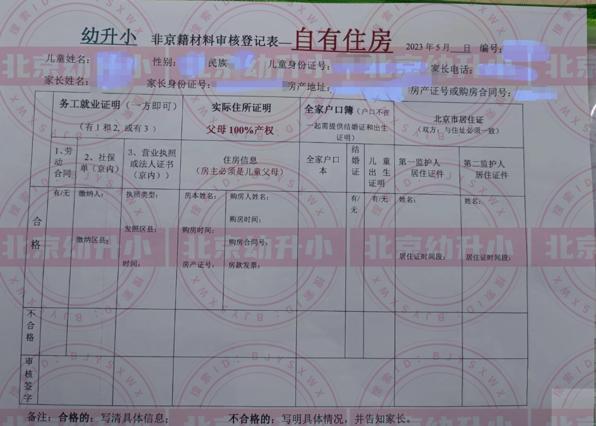 顺义区旺泉街道办审核2023年度义务教育非京籍幼升小材料审核清单