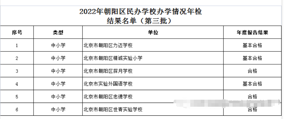 朝阳区民办中小学2022年年检结果公告(第三批)