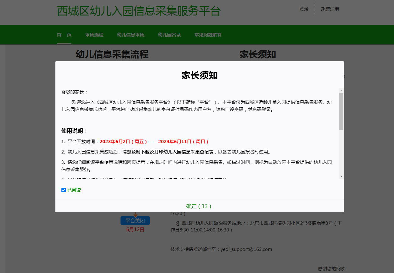东城区适龄幼儿入园信息采集服务平台网址(今日开启填报):