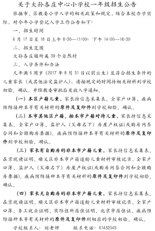2023年北京16区小学招生简章陆续发布,现为您分享2023年顺义区大孙各庄中心小学招生简章,赶紧来看顺义区大孙各庄中心小学2023年幼升小招生报名要求及招生范围,北京幼升小网团队为您分享相关内容。