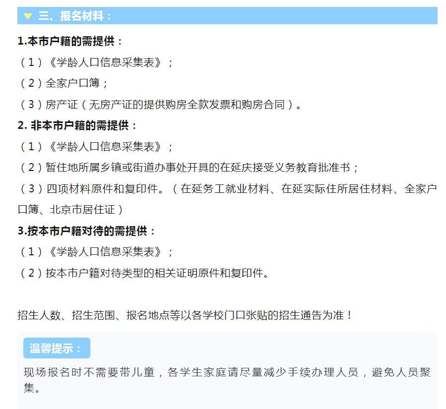 各位家长注意,延庆区2023年小学入学现场报名马上开始,具体内容赶紧和北京幼升小(ID:bjysxwx)一起来看看吧!