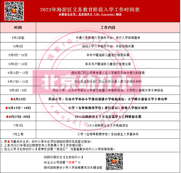 提醒:从海淀区入学时间安排表来看,1911后取得房产证报将于6月27日-29日进行网上志愿填报,7月3日进行电脑派位。具体还请以实际安排为准,时刻关注公众号,如有消息会第一时间提醒你!!