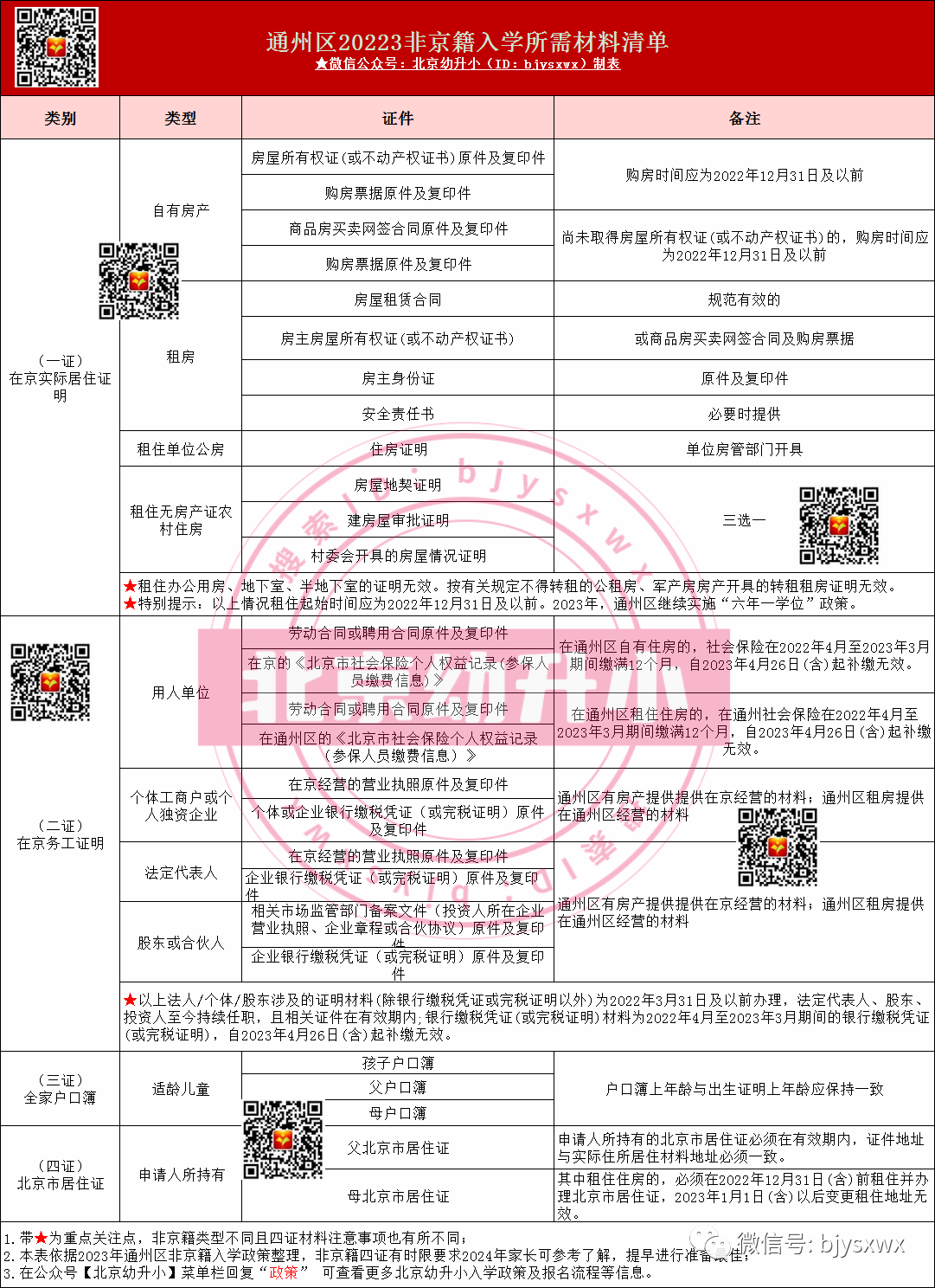 通州区非京籍幼升小仍需准备“四证”材料,以下根据2023年入学要求整理,部分有时限要求,2024年家长可提前参考!
