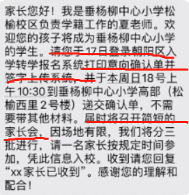 温馨提醒:目前已有家长收到学校录取通知,您请多加关注短信及电话通知,以垂杨柳中心小学松榆树校区为例:家长收到小学录取短信消息后需要在规定时间范围内,登录朝阳区义务教育阶段入学转学报名系统入口网址:2023年幼升小朝阳区义务教育阶段入学转学报名系统入口, 打印签字意向确认单,并上传至系统。