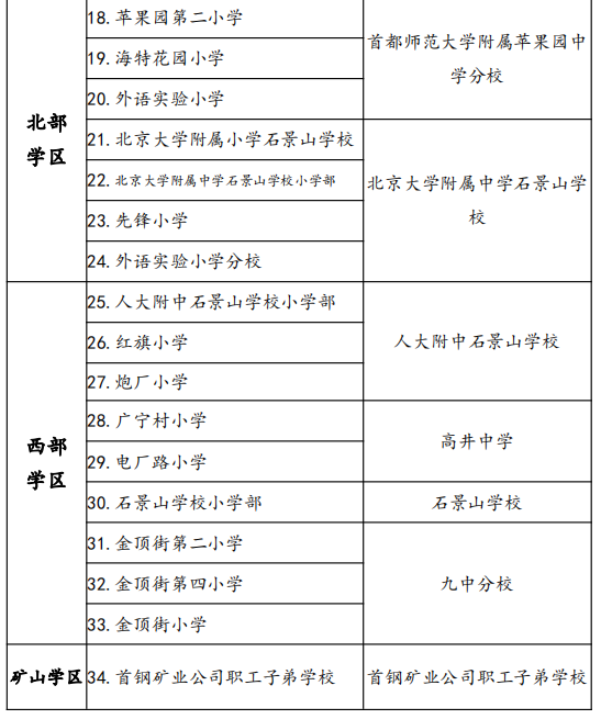 石景山区学区划分表