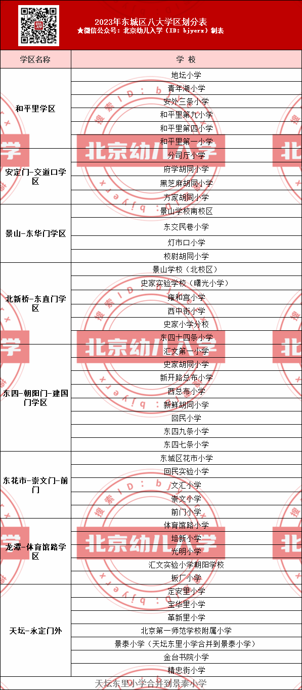 东城区共划分为8个学区分别对应不同的学校,具体内容往下看: