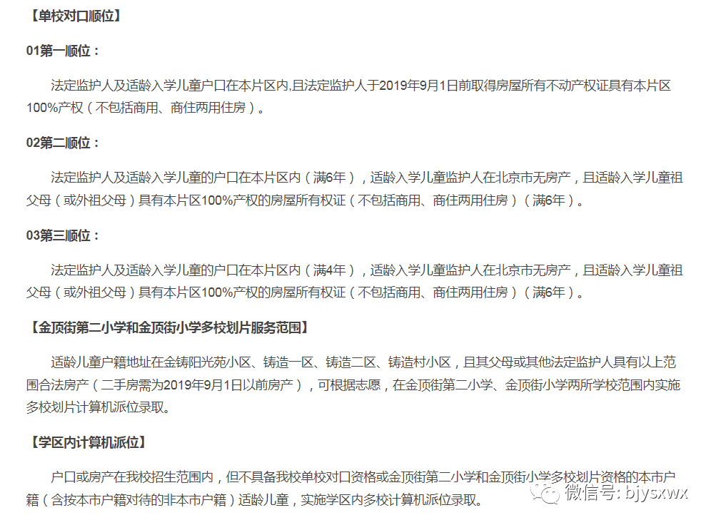提醒:从如上顺位来看,石景山区要求父母100%产权,户口在片区内+父母100%产权房产优先。