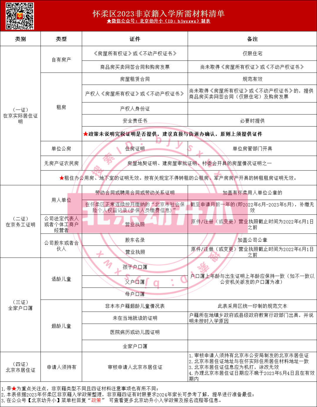 2024年幼升小家长注意,怀柔区非京籍幼升小仍需准备“四证”材料,以下根据2023年入学要求整理,部分有时限要求,2024年家长可提前参考!