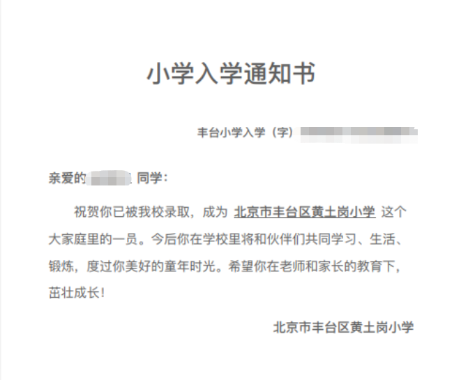 2023年丰台区小学录取结果可查,现在为您分享2023年幼升小丰台区黄土岗小学录取通知书,针对收到录取通知书后接下来做什么进行了详细说明,北京幼升小网团队为您分享相关内容。