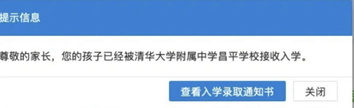 2023年幼升小北京各小学录取通知陆续发布,其中有家长分享了昌平区清华大学附属中学昌平学校录取消息,北京幼升小网团队为您分享相关内容。