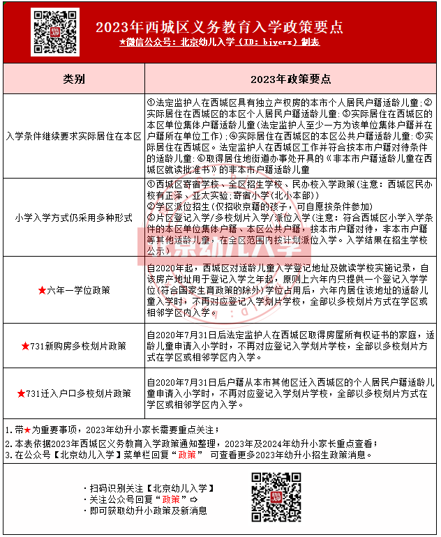 3、西城区2023年延续实行731后购房新政和迁户口多校划片政策,建议大家提前查看自家房产取得时间,对照孩子入学方式。