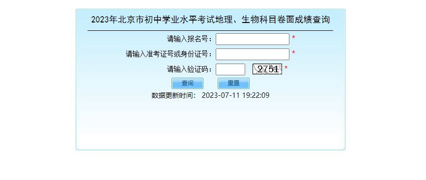 2023年北京市初中学业水平考试地理、生物科目卷面成绩查询入口:http://query.bjeea.cn/queryService/rest/xuekaochengji/index