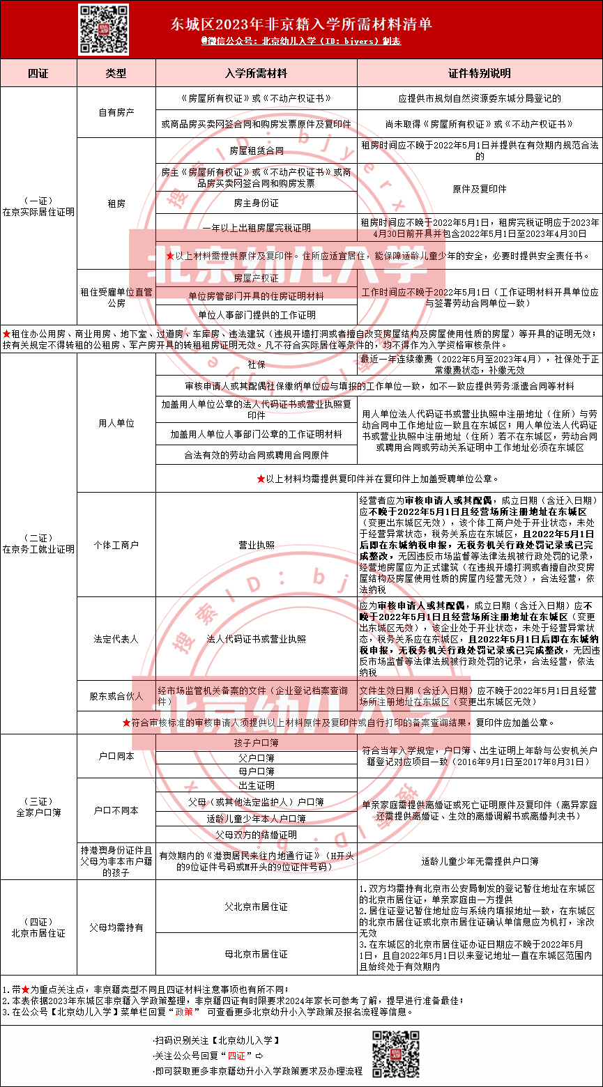 2024年幼升小家长注意,非京籍仍需准备四证材料,其中不少材料有时间要求!东城区非京籍幼升小需准备哪些材料清单?北京幼升小网团队带您一起看。