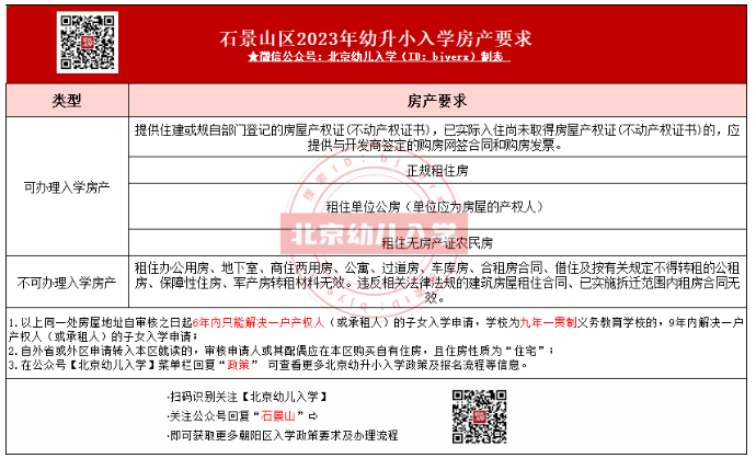 提醒:石景山区家长注意啦,正规出租房、单位公房是可以作为入学依据的,租住办公用房、地下室、车库房等不可以作为入学依据,2024年/2025年幼升小家长可对照了解自家是否符合,最终请以入学当年实际情况为准。