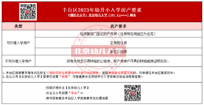 提醒:丰台区家长注意啦,正规出租房、单位公房是可以作为入学依据的,租住办公用房、地下室、车库房等不可以作为入学依据,2024年/2025年幼升小家长可对照了解自家是否符合,最终请以入学当年实际情况为准。
