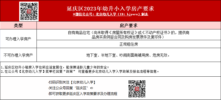 提醒:延庆区家长注意啦,正规出租房、单位公房是可以作为入学依据的,租住办公用房、地下室、车库房等不可以作为入学依据,2024年/2025年幼升小家长可对照了解自家是否符合,最终请以入学当年实际情况为准。